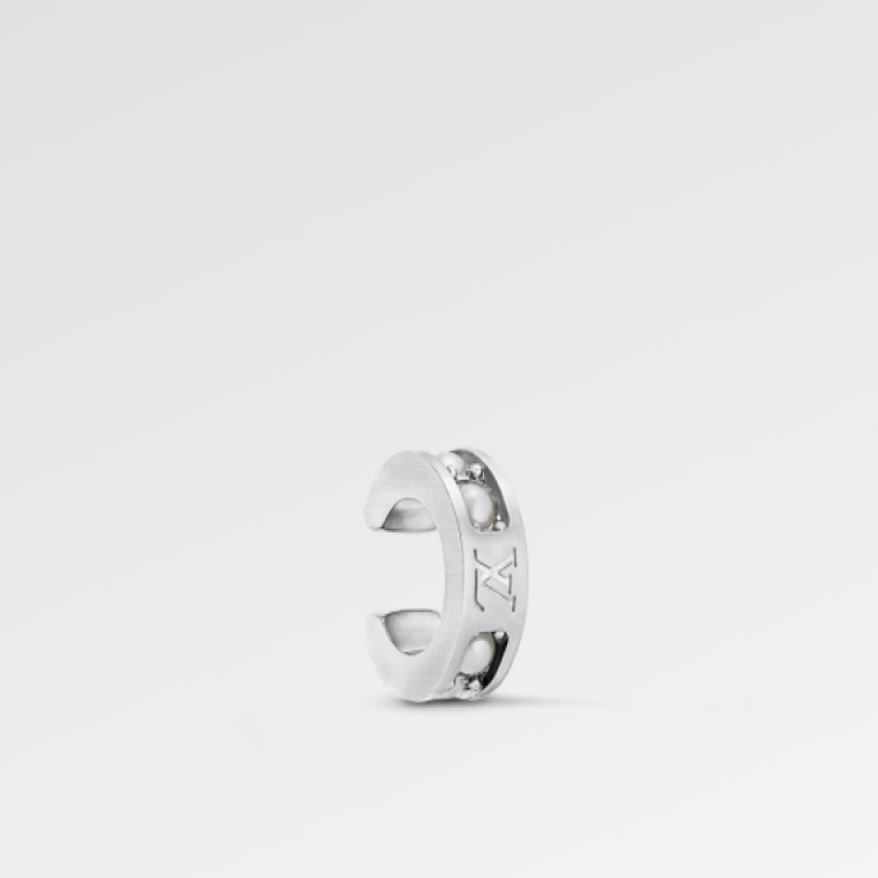 Pearls耳夾令堅實金屬呈現拉絲質感,為LV銘紋四周鑲嵌珍珠般的樹脂串珠,彰顯前衛風範和精湛匠藝。 可單獨佩戴彰顯舒朗格調,亦可與Pearls系列其他耳夾搭配相宜。