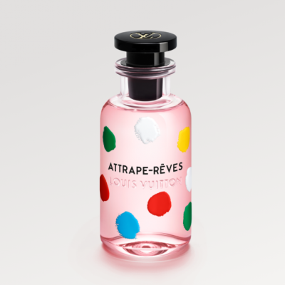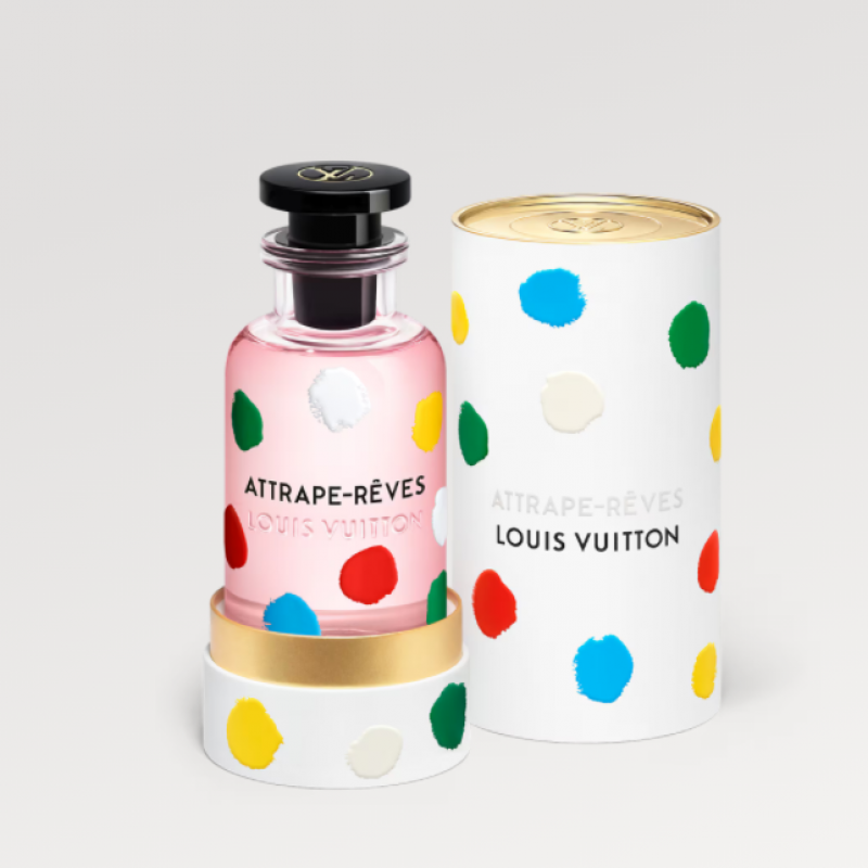 鮮活圖案釋放盎然生機,開啟夢境與現實的穿梭之旅。 路易威登x草間彌生合作系列推出限量版LV x YK追夢(Attrape-Rêves)女式香水,令藝術家筆下的標誌性元素於瓶身揮灑絢爛虹彩。 草間彌生以波點構建現實的迷幻探索與路易威登調香大師Jacques Cavallier Belletrud對自然奇觀與清醒夢境的癡迷不謀而合。 沙漠夜空乍現的北極光、熱帶叢林成群飛舞的螢火蟲,這些吉光片羽化為調香大師的創作靈感,他將可哥粉灑向牡丹花蕾,喚醒所有感官末梢。 廣藿香作為中調優雅相隨,荔枝攜清新活力收尾,凝聚成充滿歡欣的香水,奏響一曲奇妙際遇的頌歌。