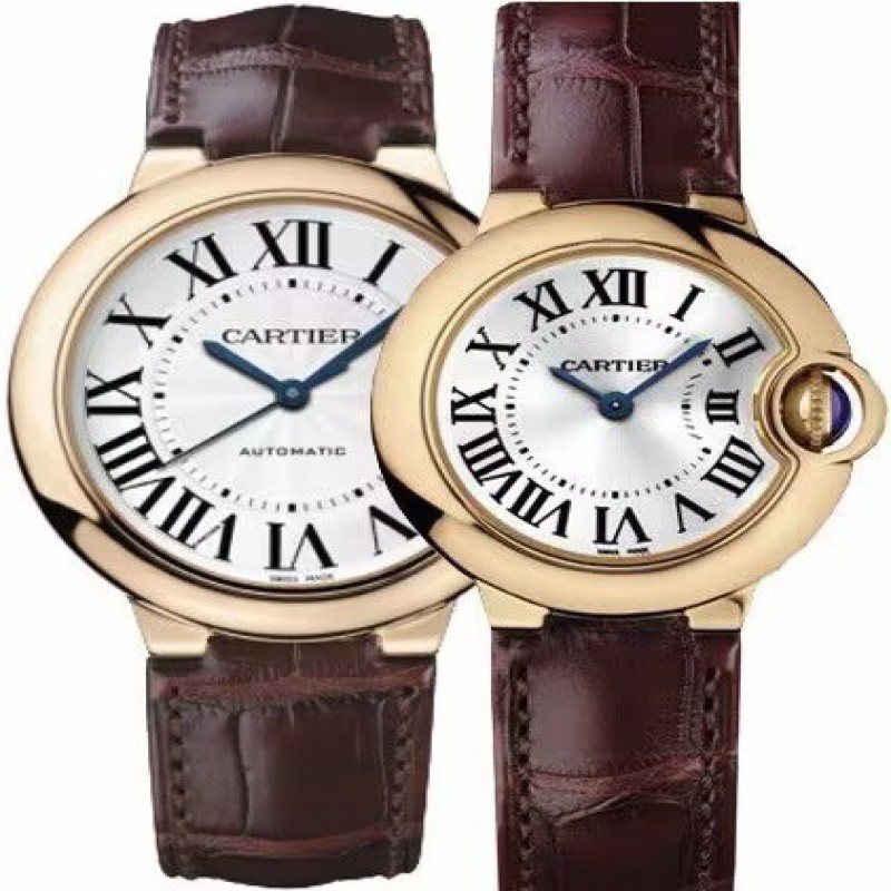 《女士》36毫米,自動機芯,玫瑰金,皮革Ballon Bleu de Cartier 腕錶,36 毫米,自動上鍊機械機芯。750/1000 玫瑰金錶殼,帶凸圓形藍寶石的凹槽表冠,鍍銀乳白色扭索飾紋錶盤,羅馬數字,劍形藍鋼指針,藍寶石水晶錶鏡,鱷魚皮錶帶,750/1000 玫瑰金針形扣。錶殼尺寸:直徑:36.6 毫米,厚度:12.05 毫米。防水 3 巴(約 30 米/100 英尺)。
