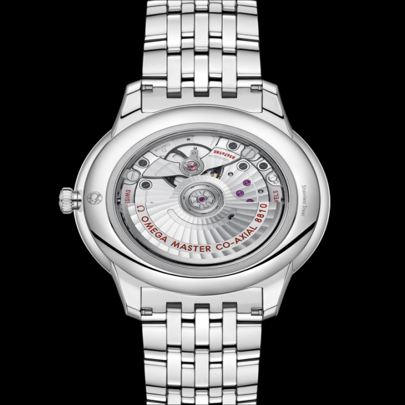 機芯類型 機芯:歐米茄機芯8810 同軸擒縱系統自動上鏈機芯,獲得瑞士聯邦計量科學研究 所(METAS)Master Chronometer認證,可抵禦高達 15,000高斯的磁場。日曆及動力儲存顯示置於6時位置, 小秒針顯示設於9時位置。無卡度游絲擺輪採用矽游絲, 雙向自動上鏈。阿拉伯風格日內瓦波浪紋鍍銠飾面。 動力儲存: 55小時 水晶鏡面 防磨損藍寶石水晶鏡面,內部經防反光處理 防水性能 3 巴 (30 米 / 100 呎) 腕表表殼及表面 表殼:不銹鋼 表殼直徑:41毫米 表耳之間闊度: 19毫米 上下表耳之間距離: 47.89毫米 厚度: 10.8毫米 表面顏色:灰色 產品總重量(約數): 123 g 表鏈帶 材質: 不銹鋼表鏈帶 帶扣類型: 蝴蝶扣 特色 防磁, 獲瑞士官方天文台認證, 日期顯示, master chronometer認證, 動力儲存顯示, 小秒針, 透明表 背