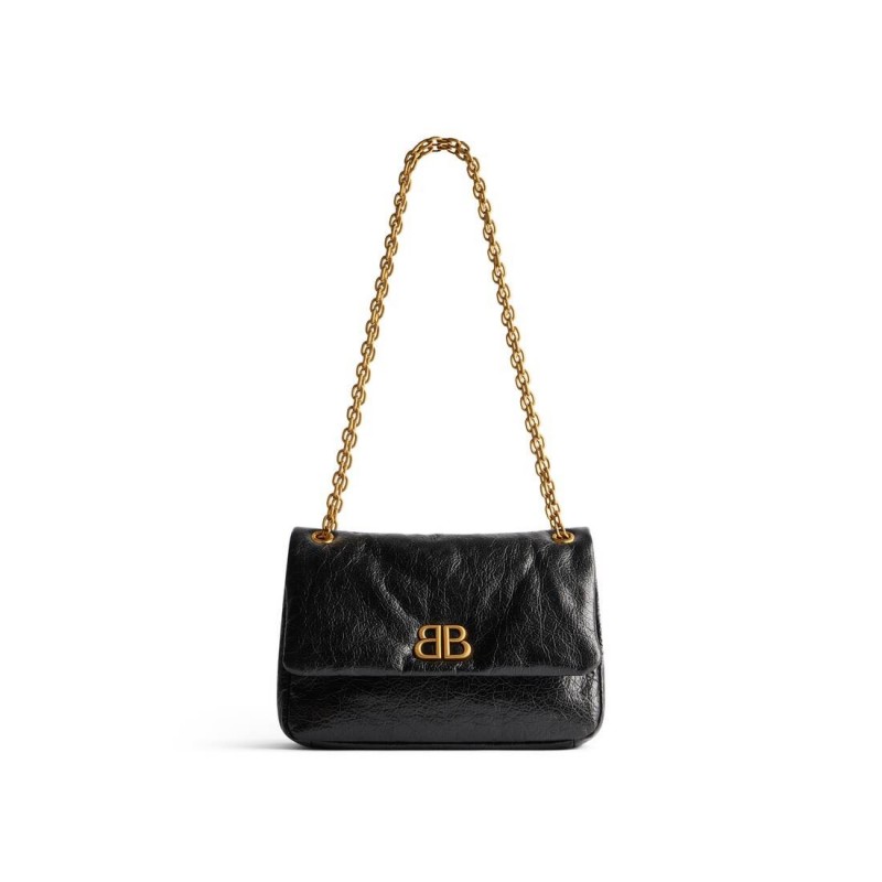巴黎世家 MONACO 迷你包 为 所有 在 黑 Monaco黑色细纹牛皮革迷你包,饰以做旧金色金属配件
