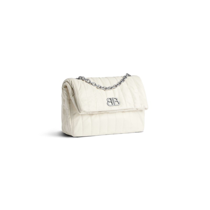 巴黎世家 女款 MONACO 小號白色絎縫鏈條包