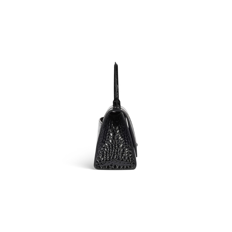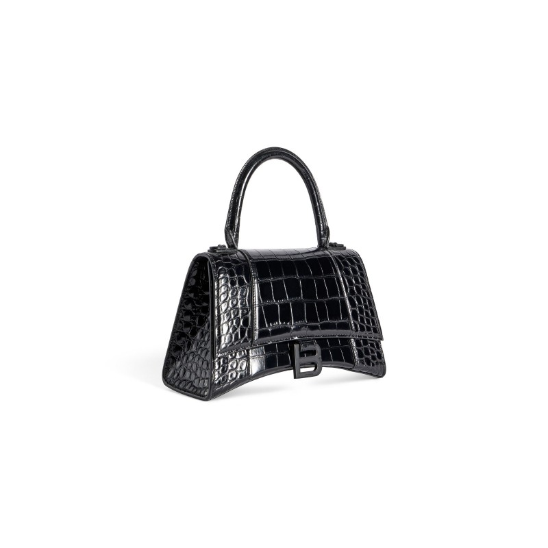 巴黎世家 女用黑色鱷魚紋壓花沙漏小號手提包