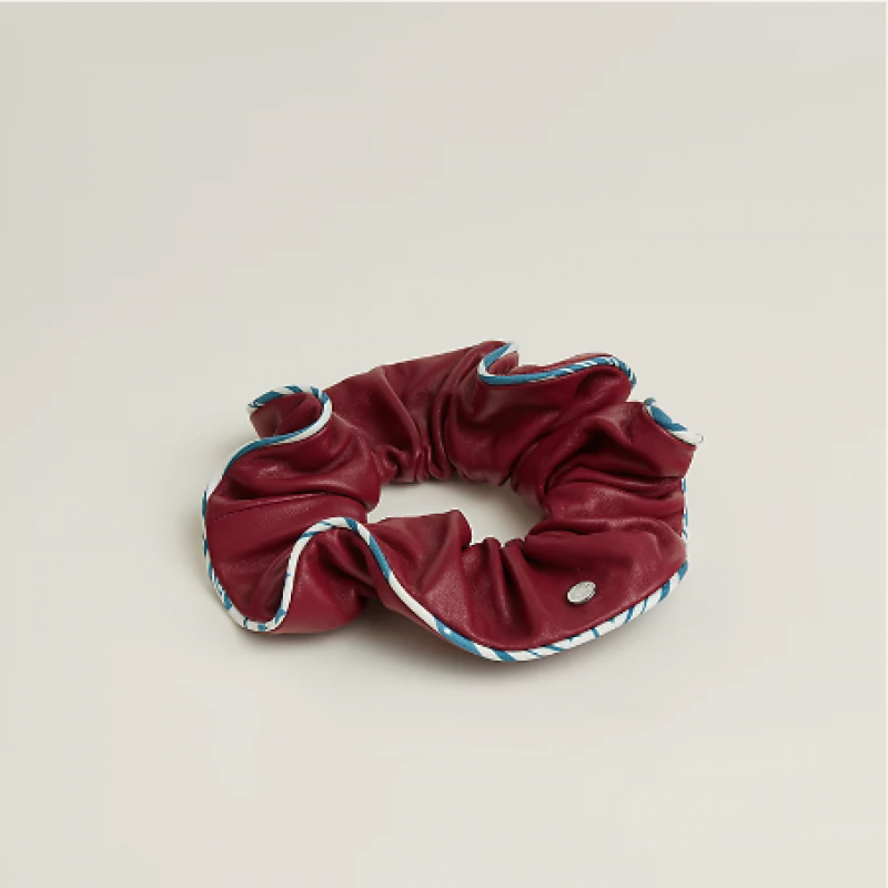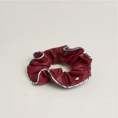 Nappa皮革質感小羊皮髮圈,飾有斜紋真絲滾邊,「曲折鞍帶頭巾」圖案印花和拋光鍍鈀馬鞍釘細節。