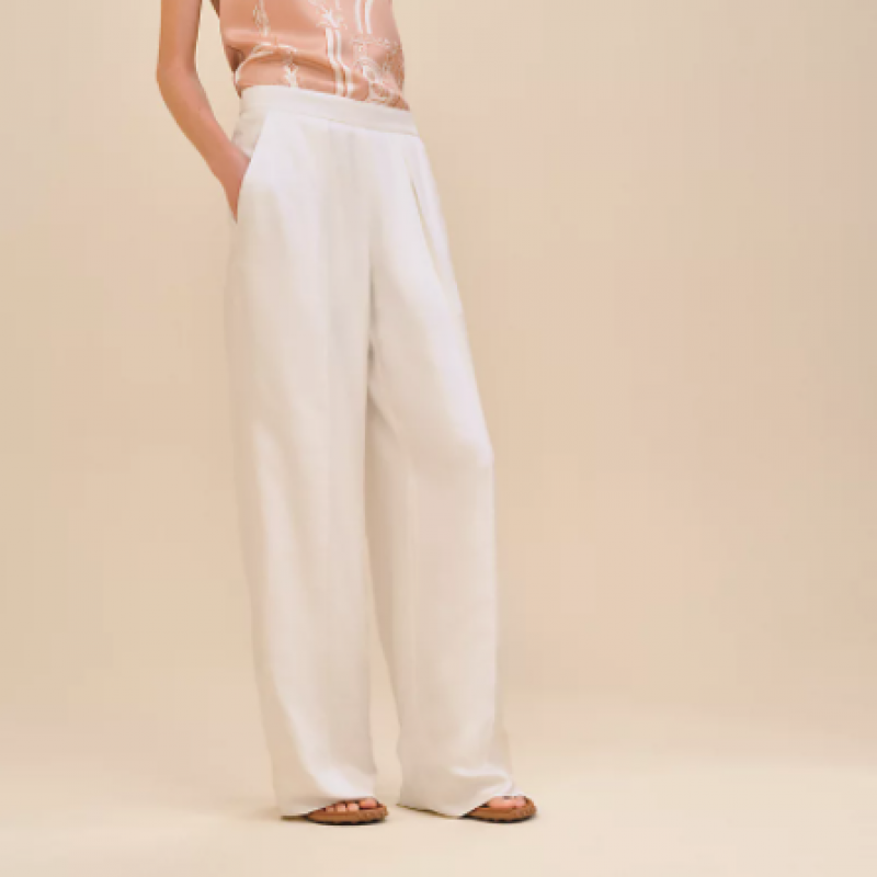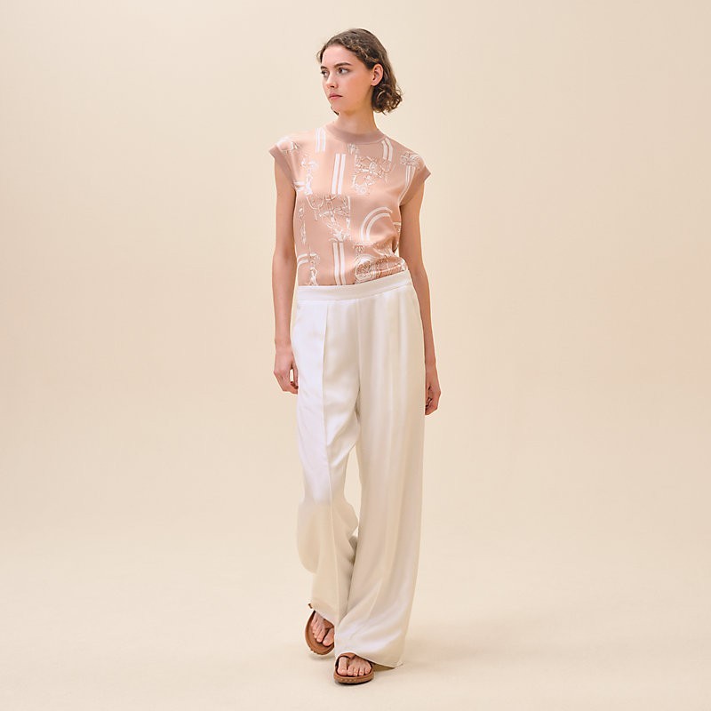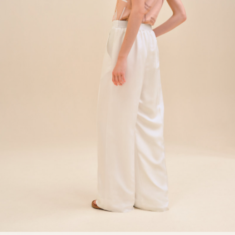 純色斜紋絲質睡衣風格長褲(100%桑蠶絲)。