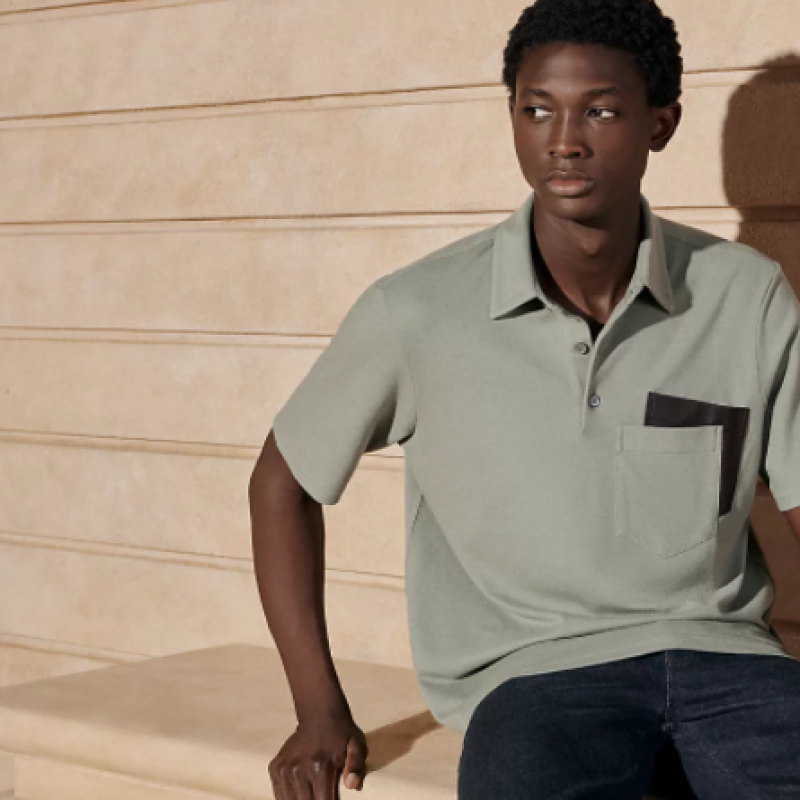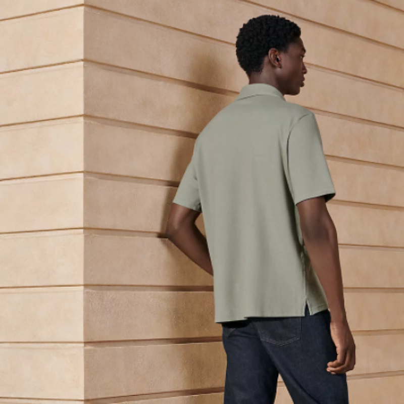 棉質和山羊絨短袖Polo衫(85%棉,15%山羊絨)。