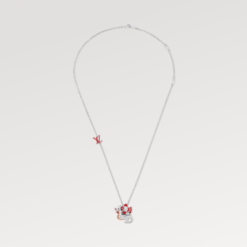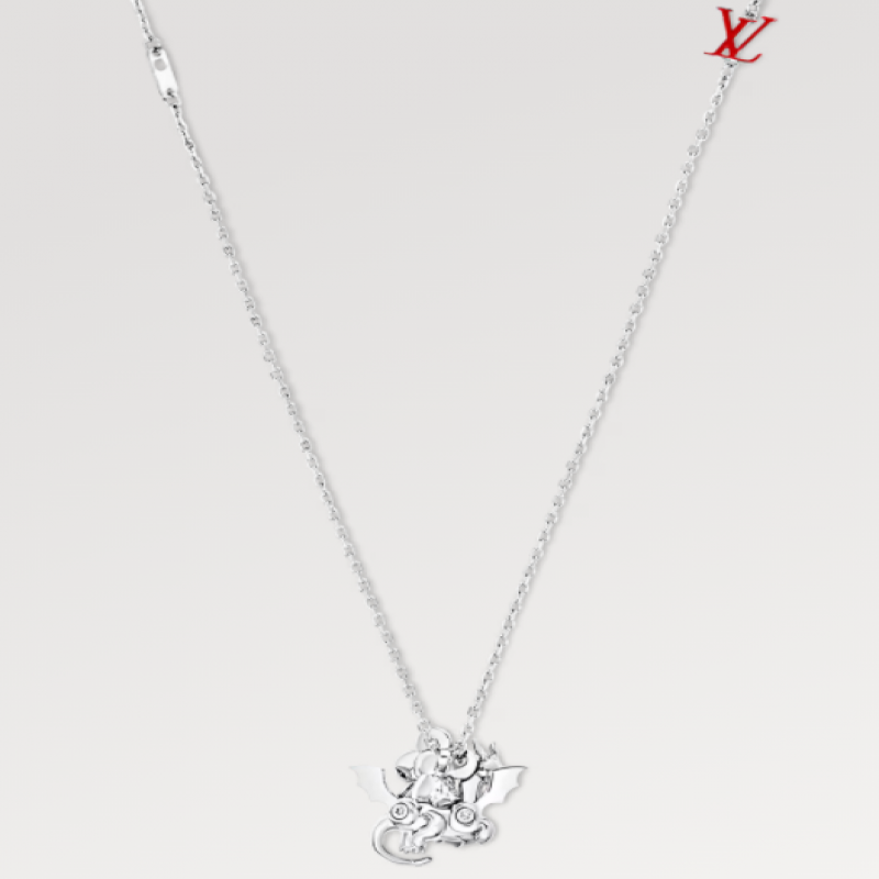 LV Dragon項鍊匠心雕琢Vivienne乘駕祥龍的吊墜設計,以鉸接羽翼塑造振翅高飛之姿,與LV字母裝潢共同連於可調節鏈條,可為摯愛著裝注入盎然意趣,成就品牌擁躉的新春佳禮。